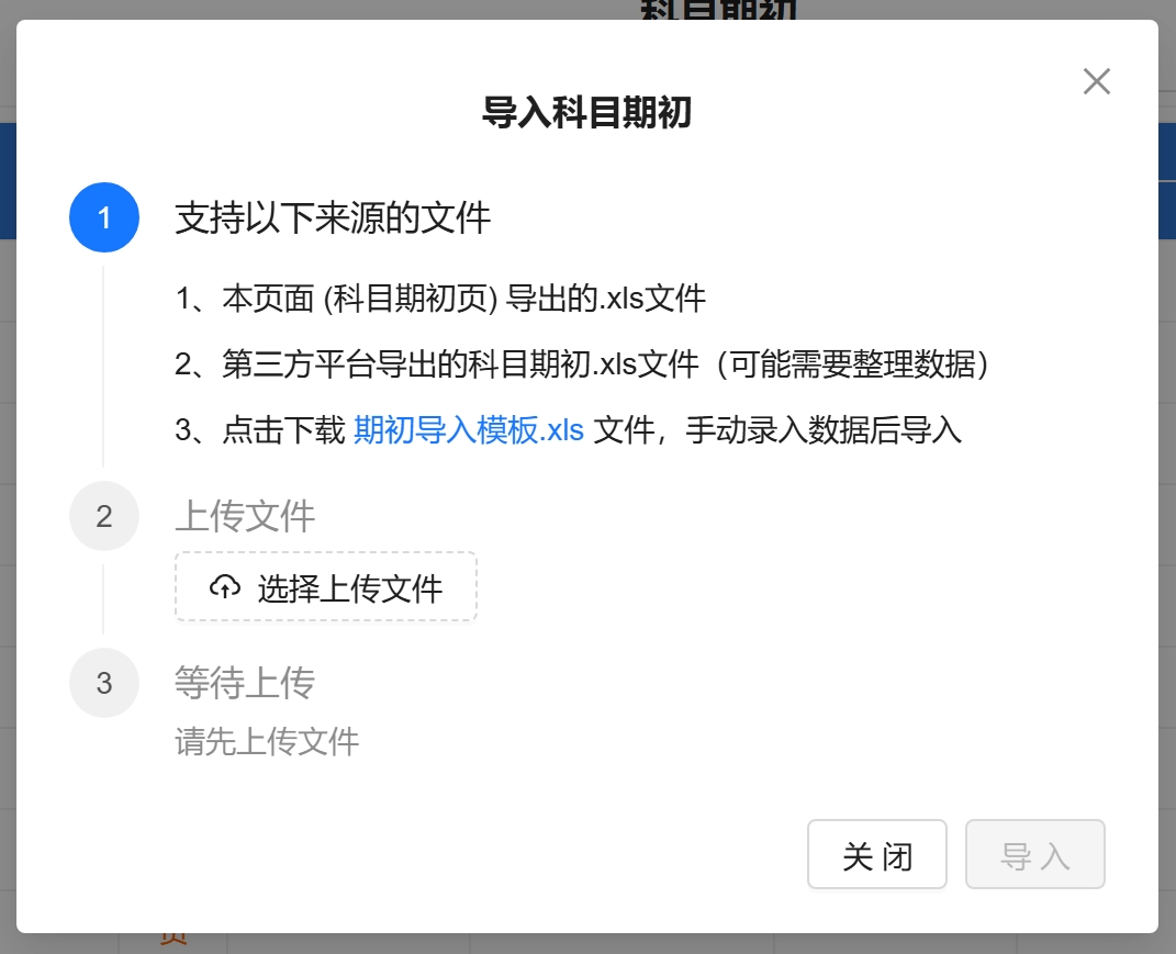 点击导入按钮,弹出导入科目期初对话框,如下图: