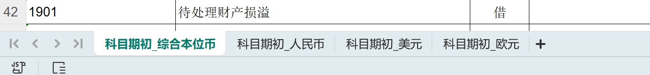 如果科目启动了外币核算,则会导出多个sheet数据,如下图:
