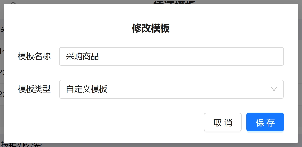 点击模板的编辑按钮,弹出编辑对话框,可编辑模板,如下图所示: