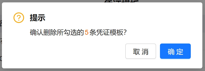 (2) 删除某一模板,点击模板的删除按钮,弹出删除确认框,点击确认即可删除此模板