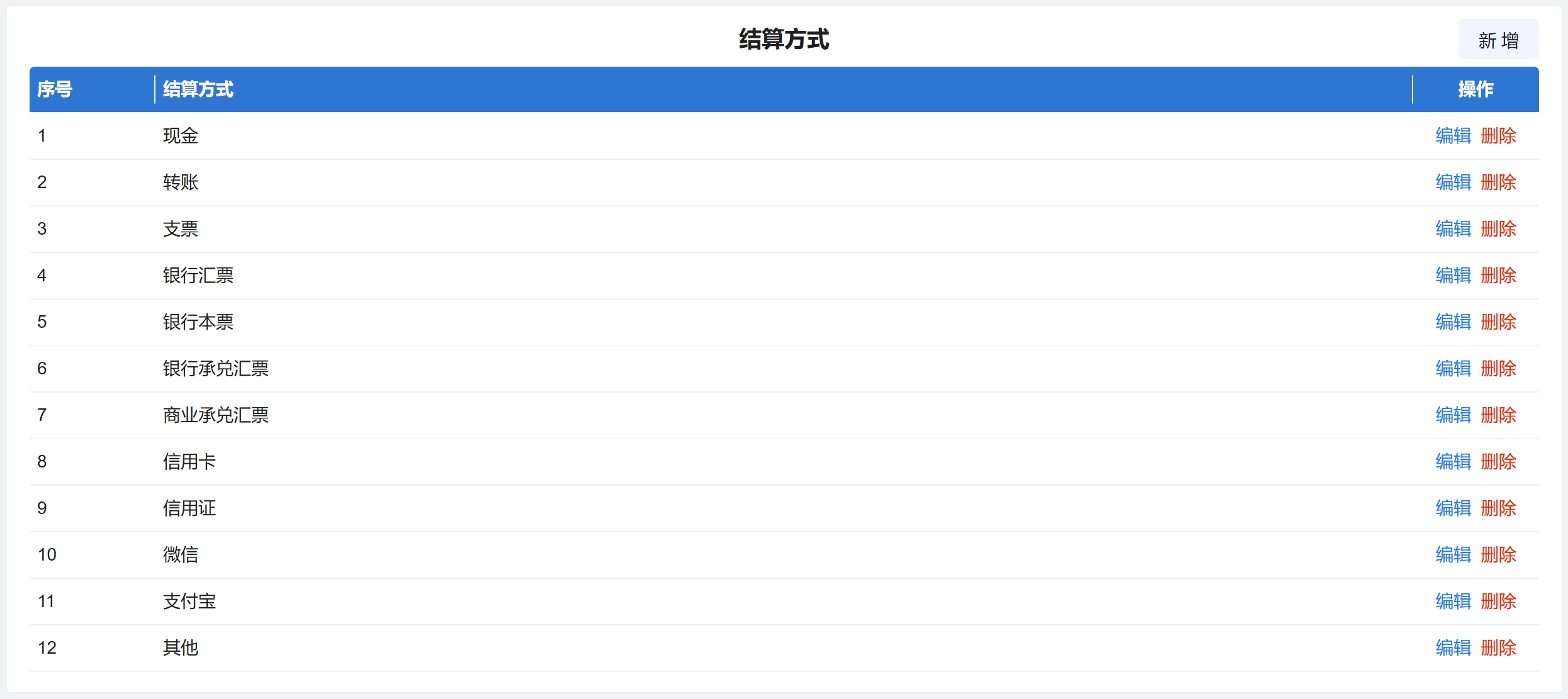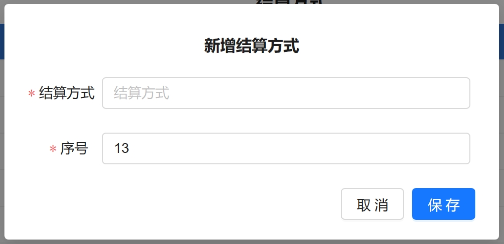 点击结算方式的编辑按钮,弹出编辑对话框,可编辑结算方式,如下图所示: