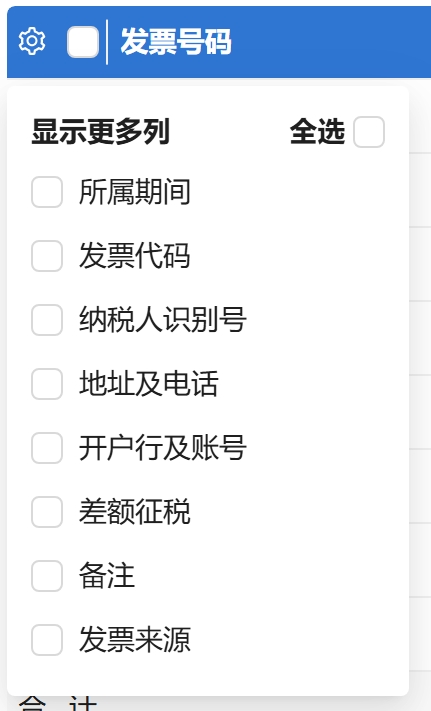 (2) 默认情况下,表格并未完全显示所有列,点击左上角齿轮,打开列设置,可勾选要显示的列,如下图所示::