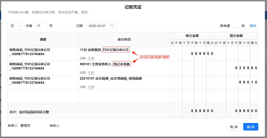 (6) 点击保存按钮,会保存当前录入的发票,并关闭Tab页;点击保存并新增按钮,会保存当前录入的发票,并清空数据等待输入下一张发票