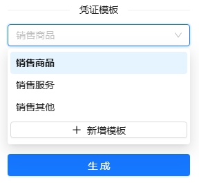 (2) 凭证模板:根据发票性质,选择凭证模板,如果没有想要的模块,可以点击下拉列表的新增按钮,快速新增凭证模板
