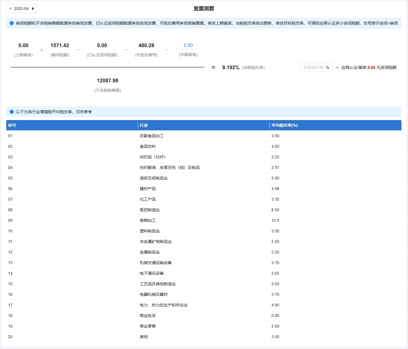 发票测算