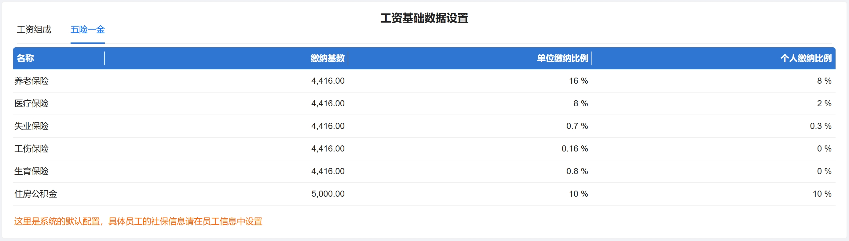 这里是系统级别的五险一金,员工基本的五险一金可以覆盖这里的设置