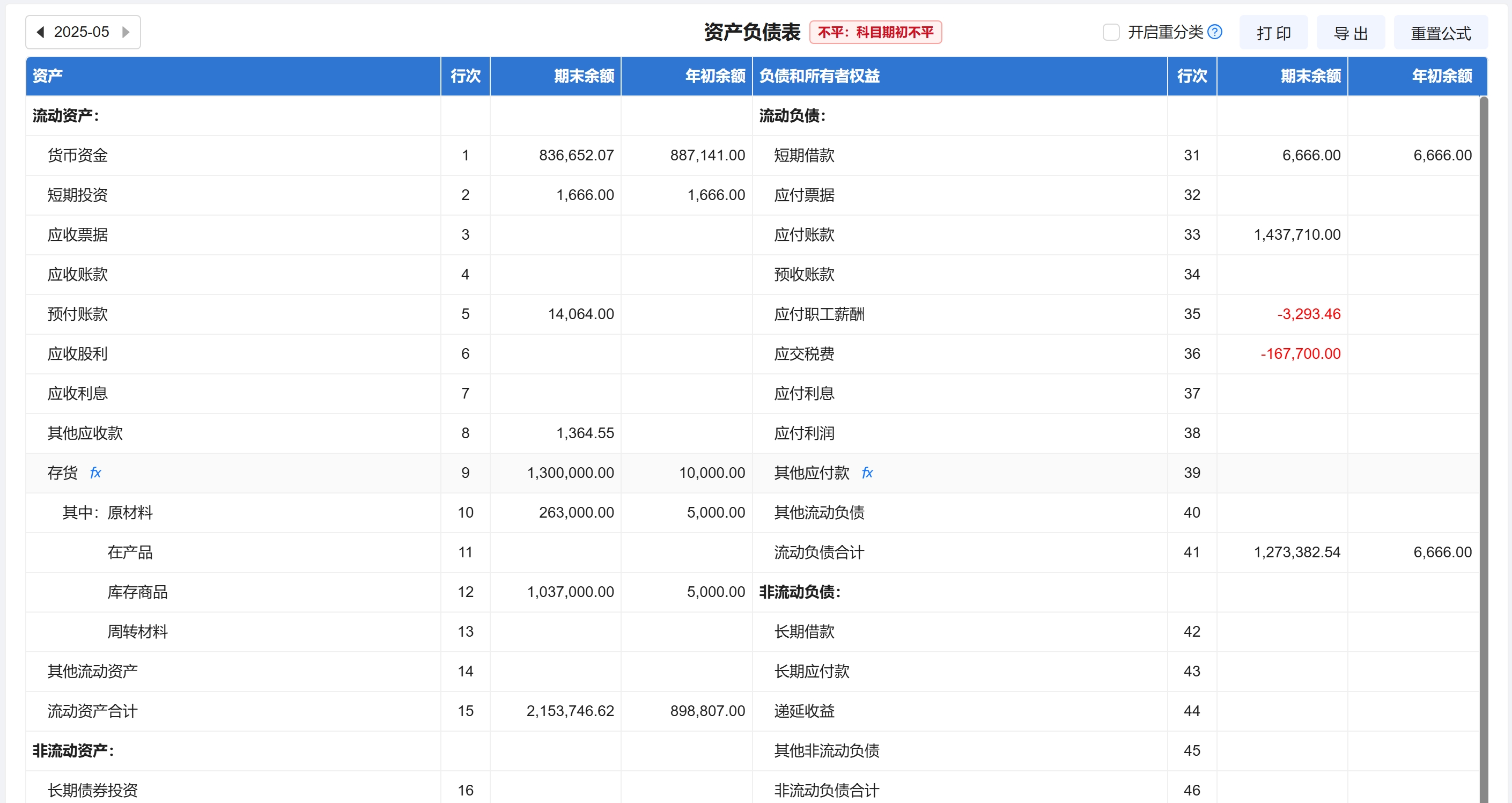 不平:报表公式不完整,可能您新增了一级科目但没有加入到报表公式,你看参考