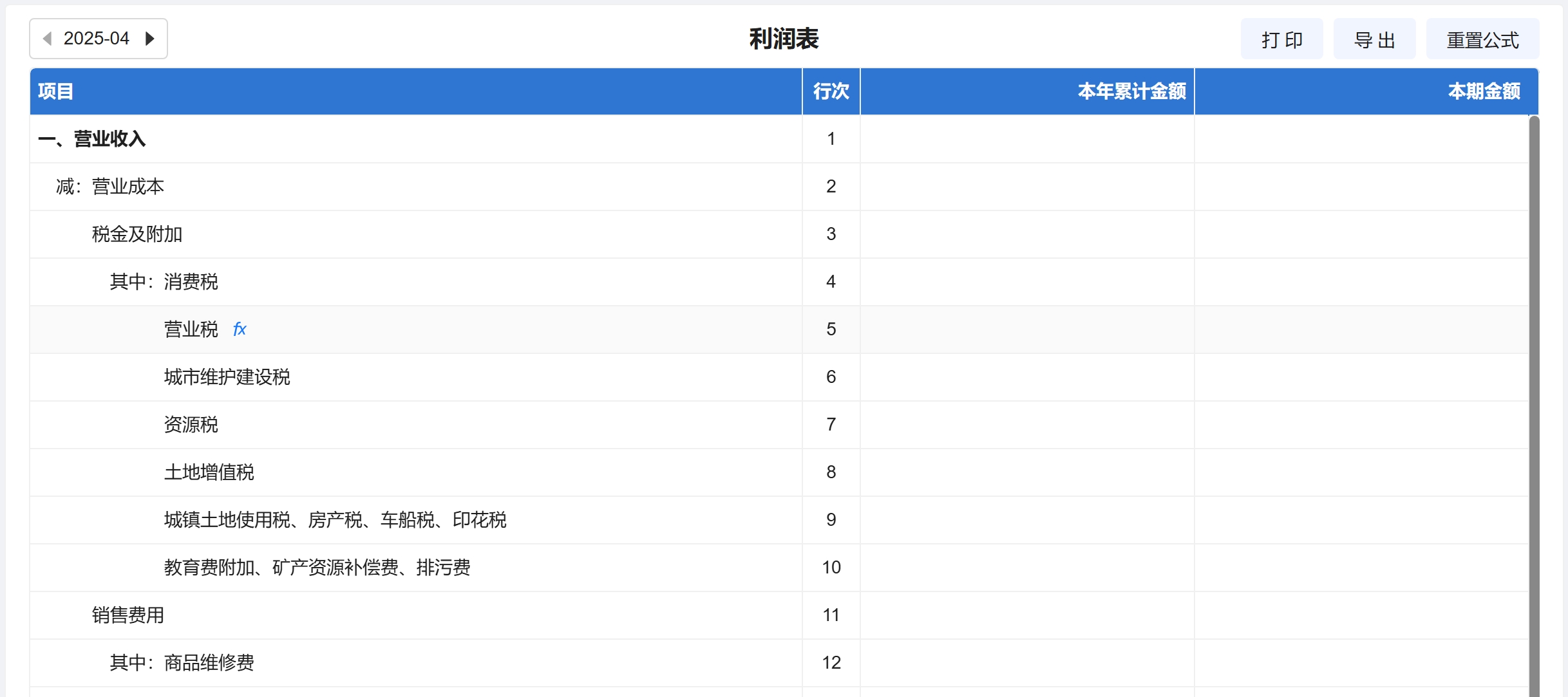 点击日期控件上的向左、向右箭头快速切换会计期间,即可查询不同期间的利润表