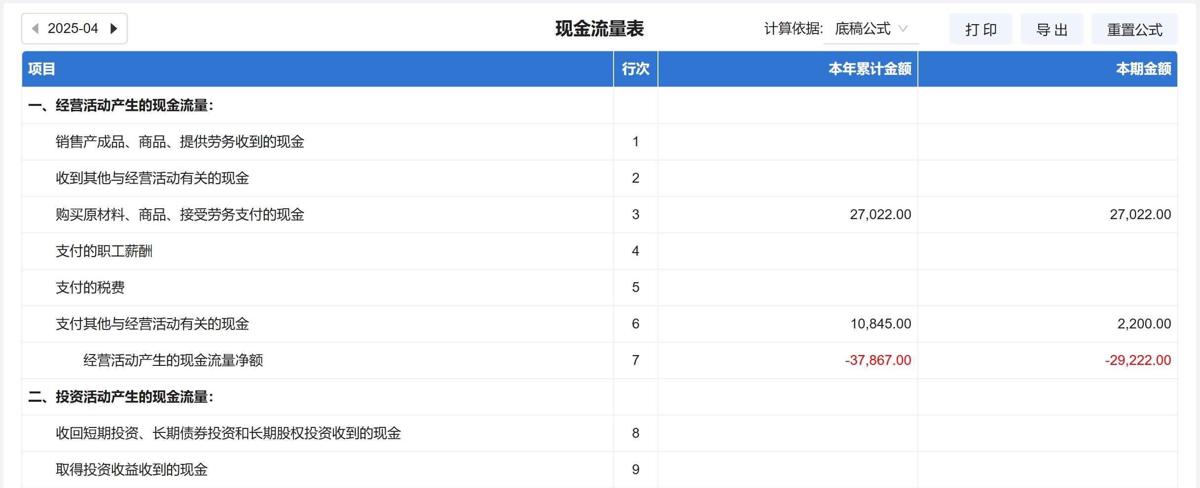 点击日期控件上的向左、向右箭头快速切换会计期间,即可查询不同期间的现金流量表