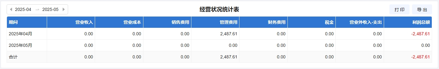 按钮,弹出打印对话框,点击打印即可打印经营状况统计表