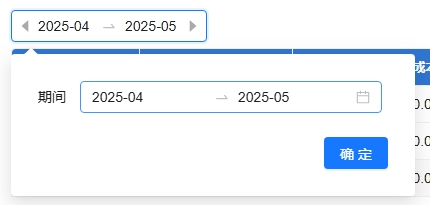 箭头快速切换会计期间,即可查询不同期间的经营状况统计表;也可点击日期控件,弹出检索窗口查询,如下图