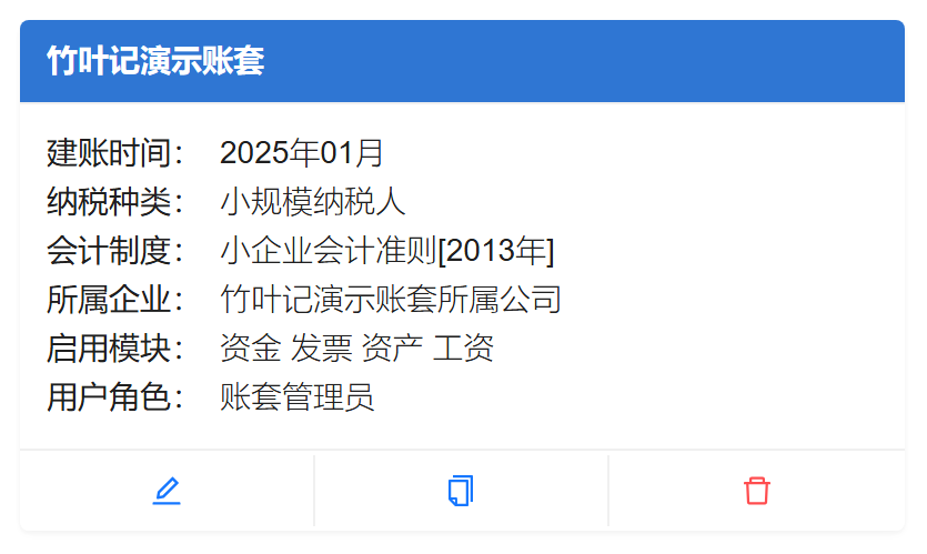 此界面可查看本账号下所有账套,包括自己创建的和其他用户分配的